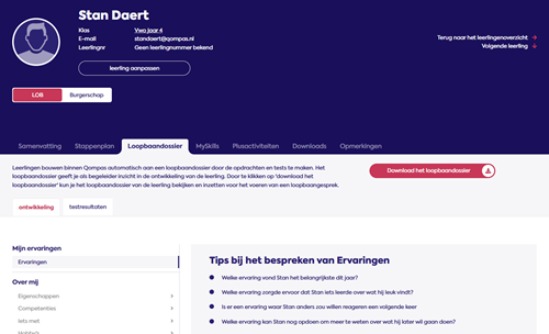 Door het maken van opdrachten en tests in Qompas en het opslaan van ervaringen opgedaan binnen en buiten school, bouwen leerlingen automatisch aan hun loopbaandossier. Het online dossier vind je als begeleider in beheer.qompas.nl als je naar de betreffende leerling gaat. Dat is mooi, maar wat doe je er vervolgens mee?
